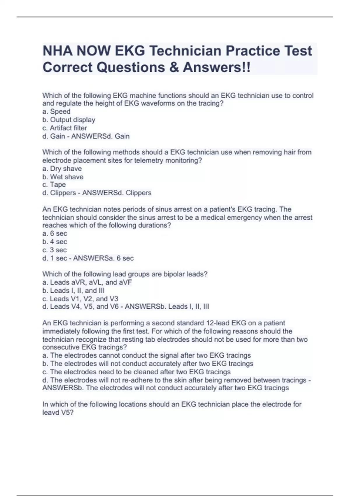 NHA EKG Certification Study Guide Q s And A s EKG Certification