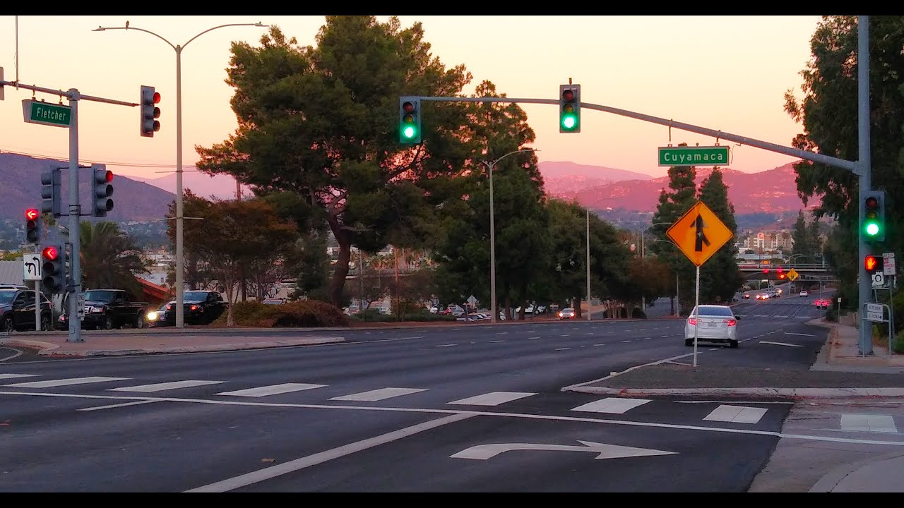 Old El Cajon Traffic Lights Down A Fast Hill (Fletcher Pkwy Cuyamaca