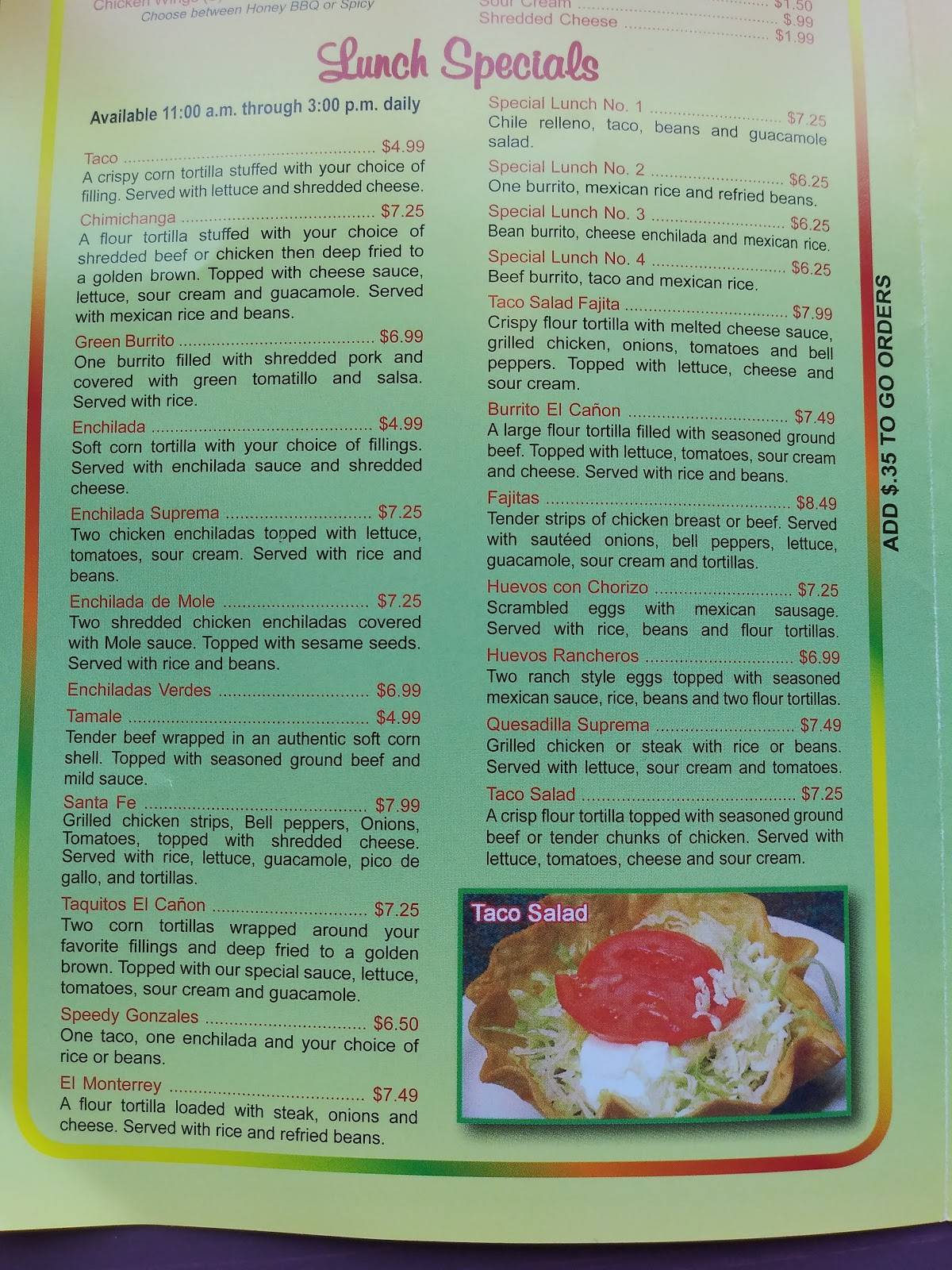 El Canon Mexican Restaurant Menu in Washington Court House OH Order
