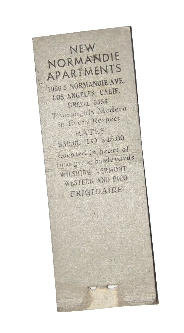 Hotel California El Centro Las Palmas Court 1920 Matchbook Cover
