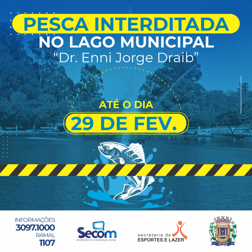 Pesca no Lago Municipal ficará interditada até 29 de fevereiro de 2024