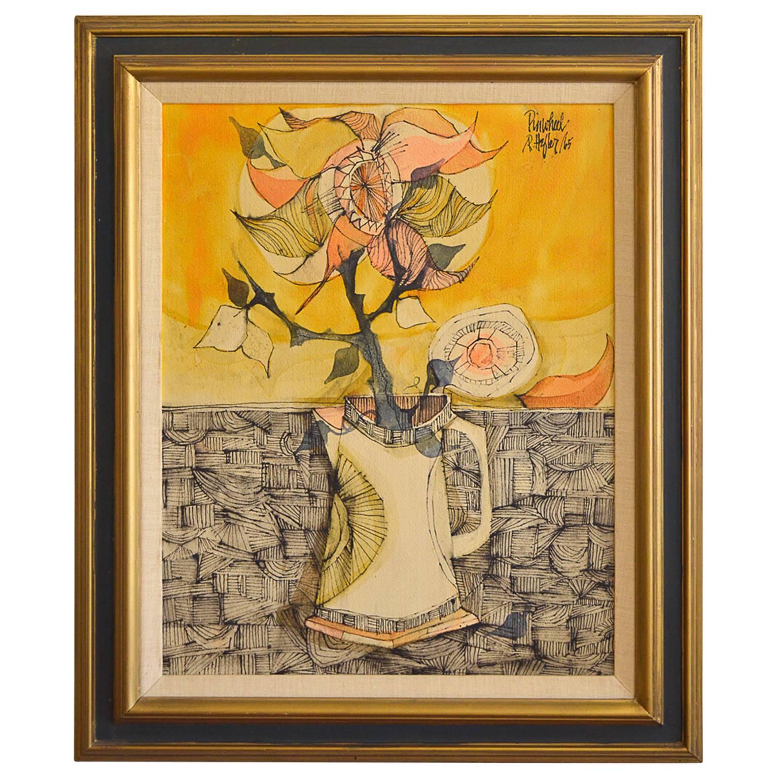 Mexican Oil Painting on Canvas Midcentury Rich Boy Style of Horacio