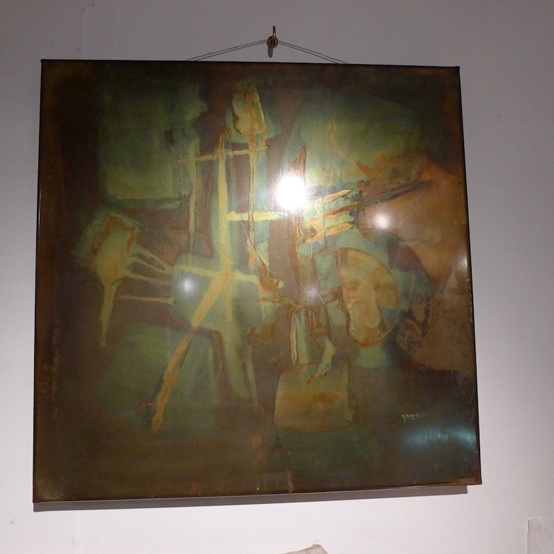 Vintage Modern Metallic Abstract Art Acid Etched on Copper Giovenetti