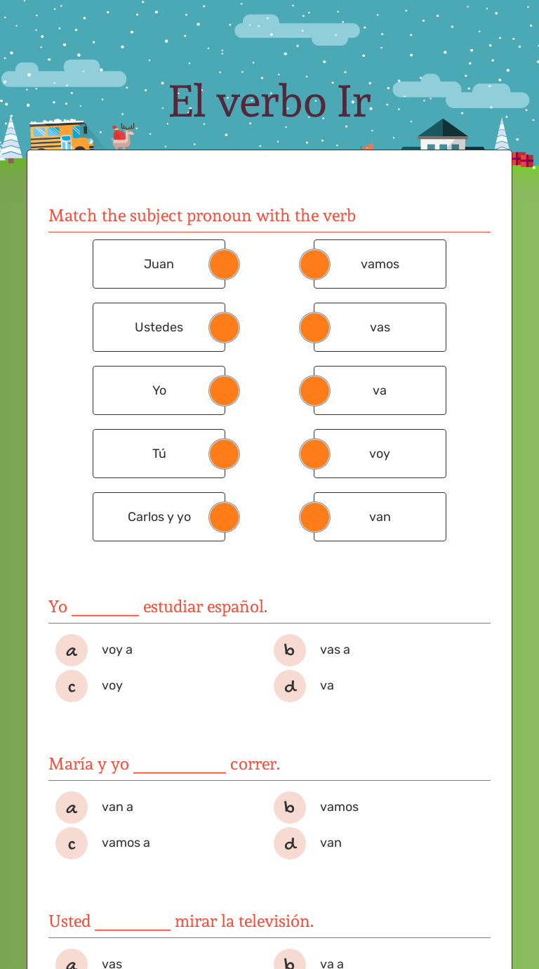 El verbo Ir (to go) Matching Interactive e Worksheet Quickworksheets