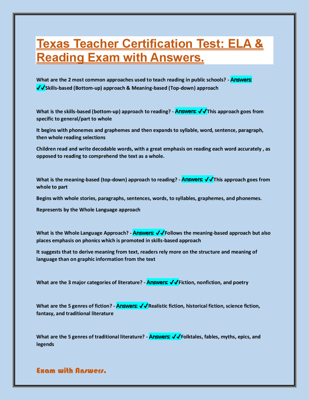 Texas Teacher Certification Test: ELA Reading Exam with Answers