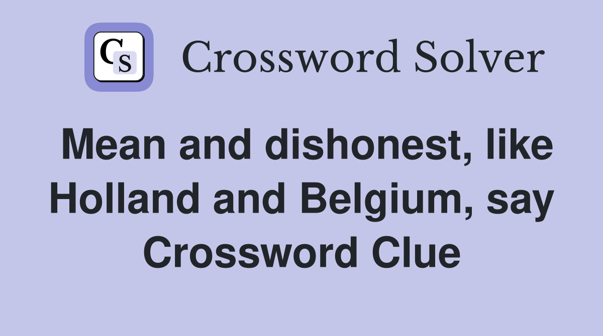 Mean and dishonest like Holland and Belgium say Crossword Clue