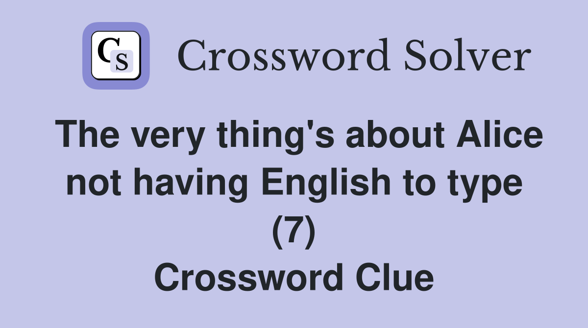 The very thing s about Alice not having English to type (7) Crossword