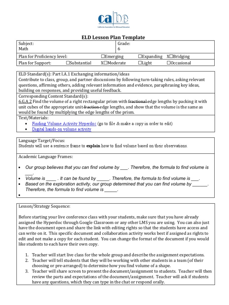 Eld Lesson Plan Template Eld Lesson Plan Template Customize 1 304