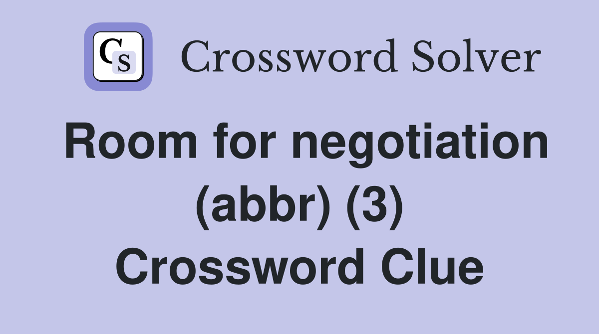 Room for negotiation (abbr) (3) Crossword Clue Answers Crossword Solver