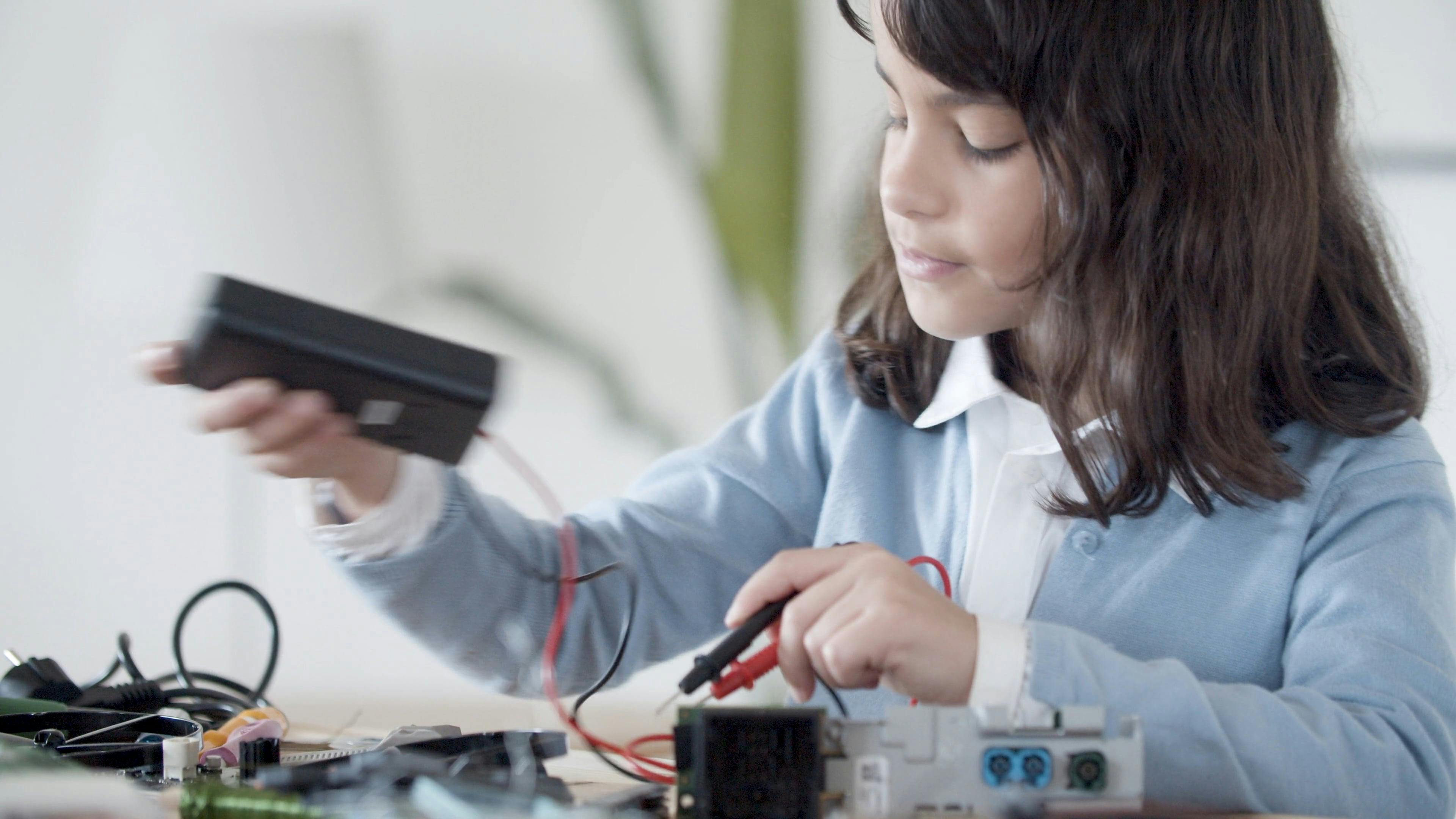 A Kid Using a Electrical Tester · Free Stock Video