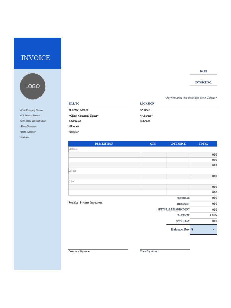 Electrical Contractor Invoice Template Excel PDF