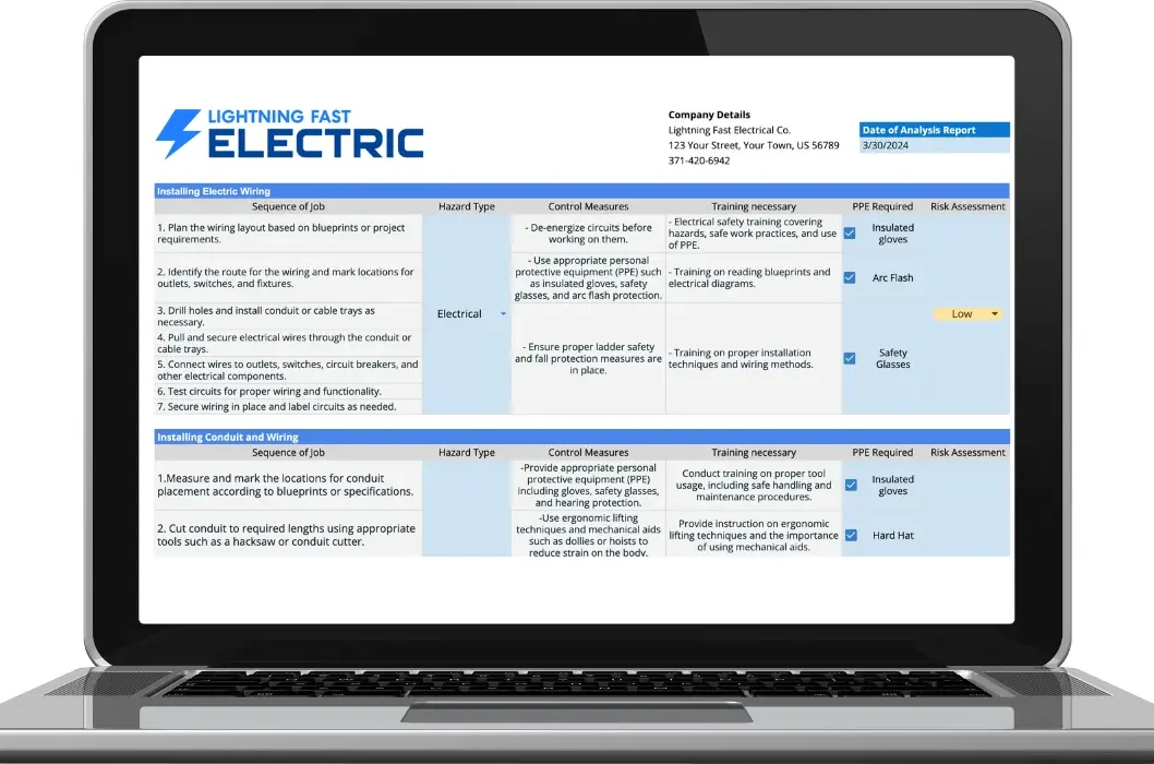Electrical Job safety analysis (JSA) for electricians to manage WHS