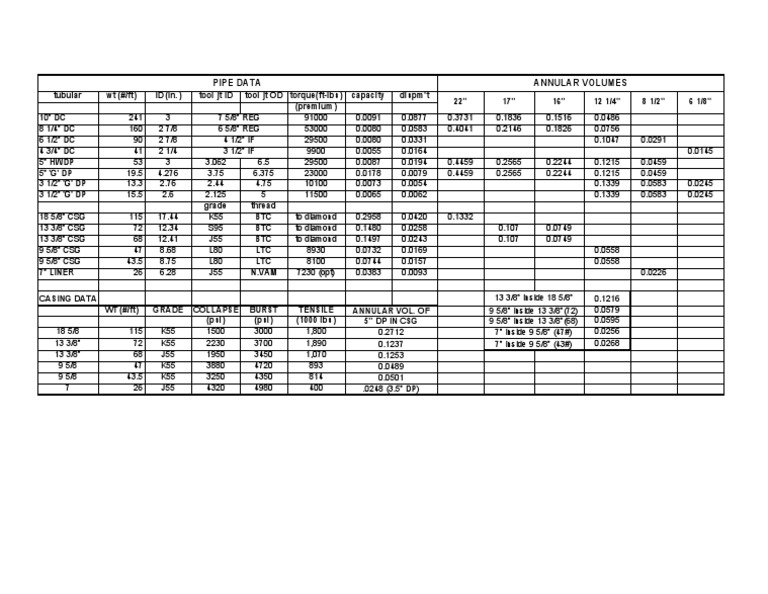 Casing Drill Pipe Data PDF Tools Mechanical Engineering