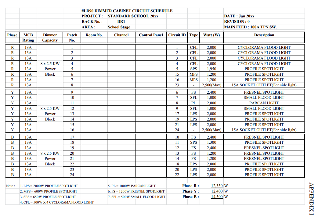 LIGHTING POWER PANEL BOARD SCHEDULE OF VILLA