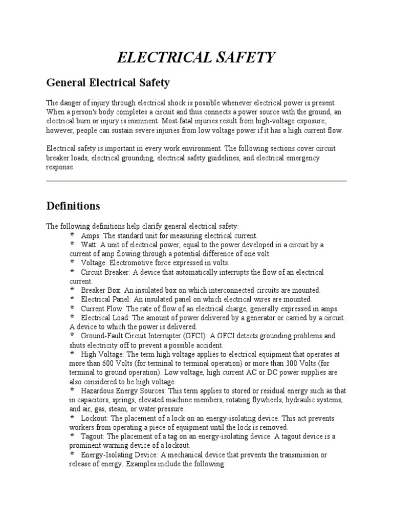 Electrical Safety Procedure Sample Beyond Your Horizon Resource Centre