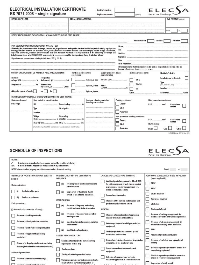 Fixed Wiring Certificate Electrical Wiring Certificate