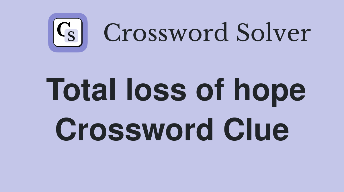 Total loss of hope Crossword Clue Answers Crossword Solver