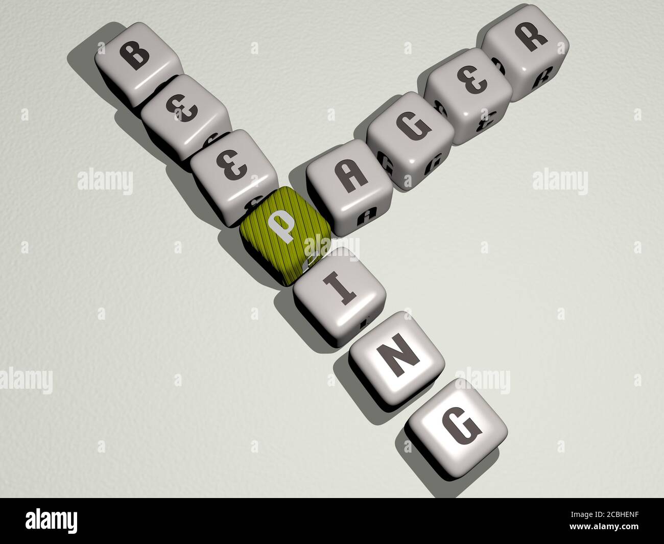 PAGER BEEPING crossword by cubic dice letters 3D illustration for