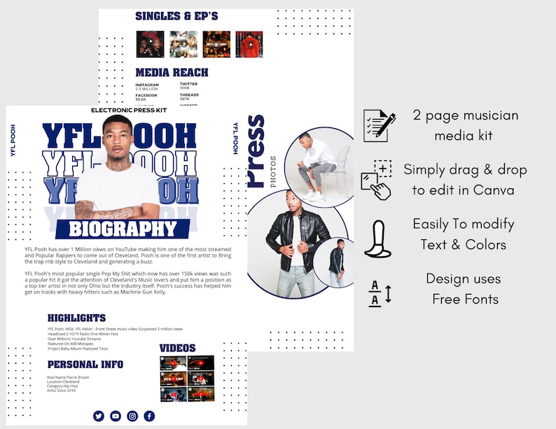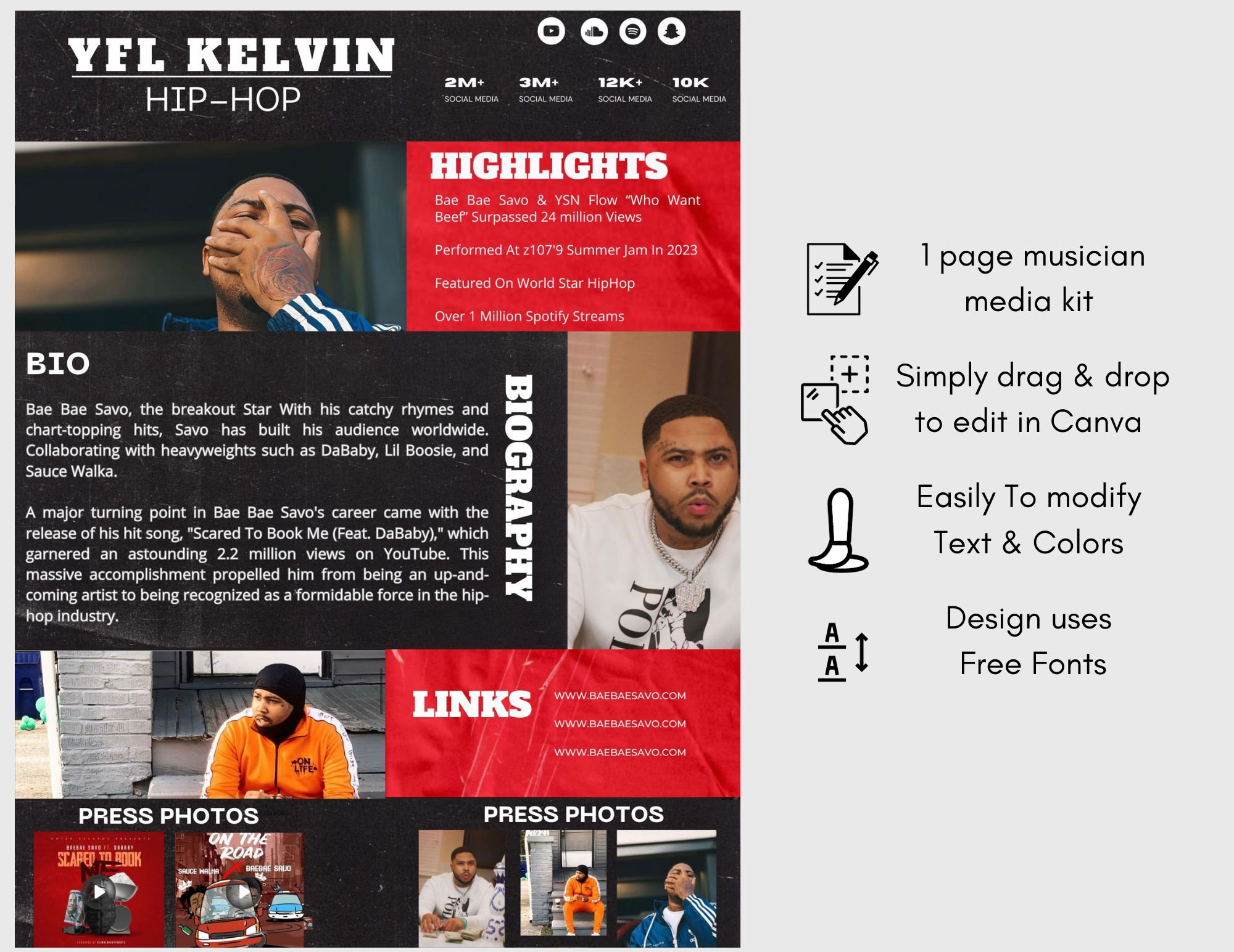 Electronic Press Kit Media Kit Template for Musicians Etsy