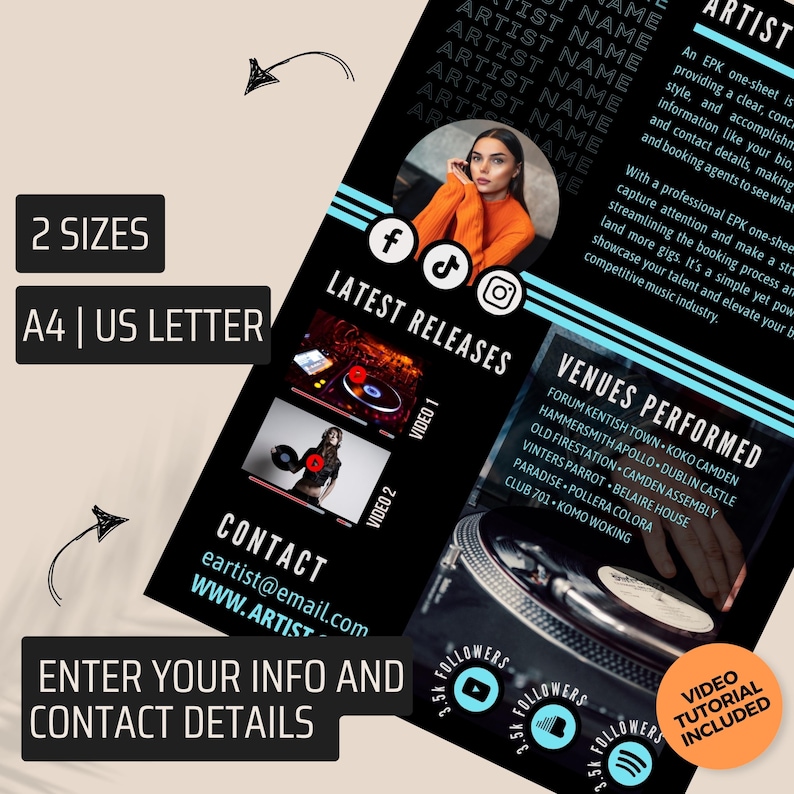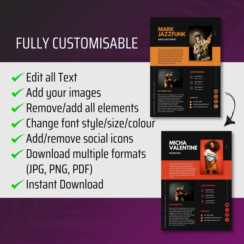 Electronic Press Kit Media Kit Template for Musicians Etsy