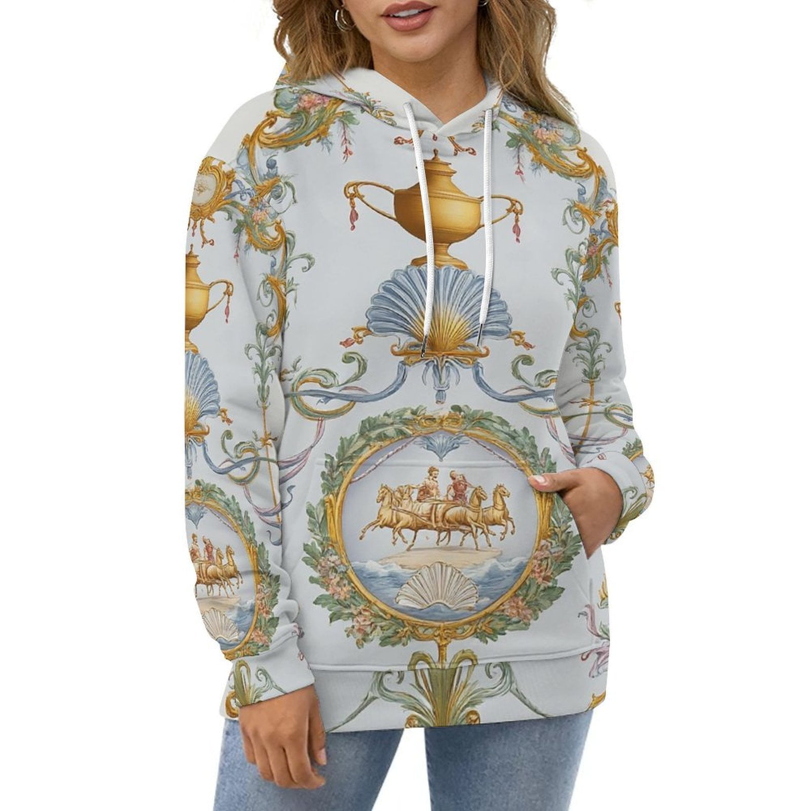 Elegant Rococo Chariot Design Oversized Hoodies For Woman Pullover With