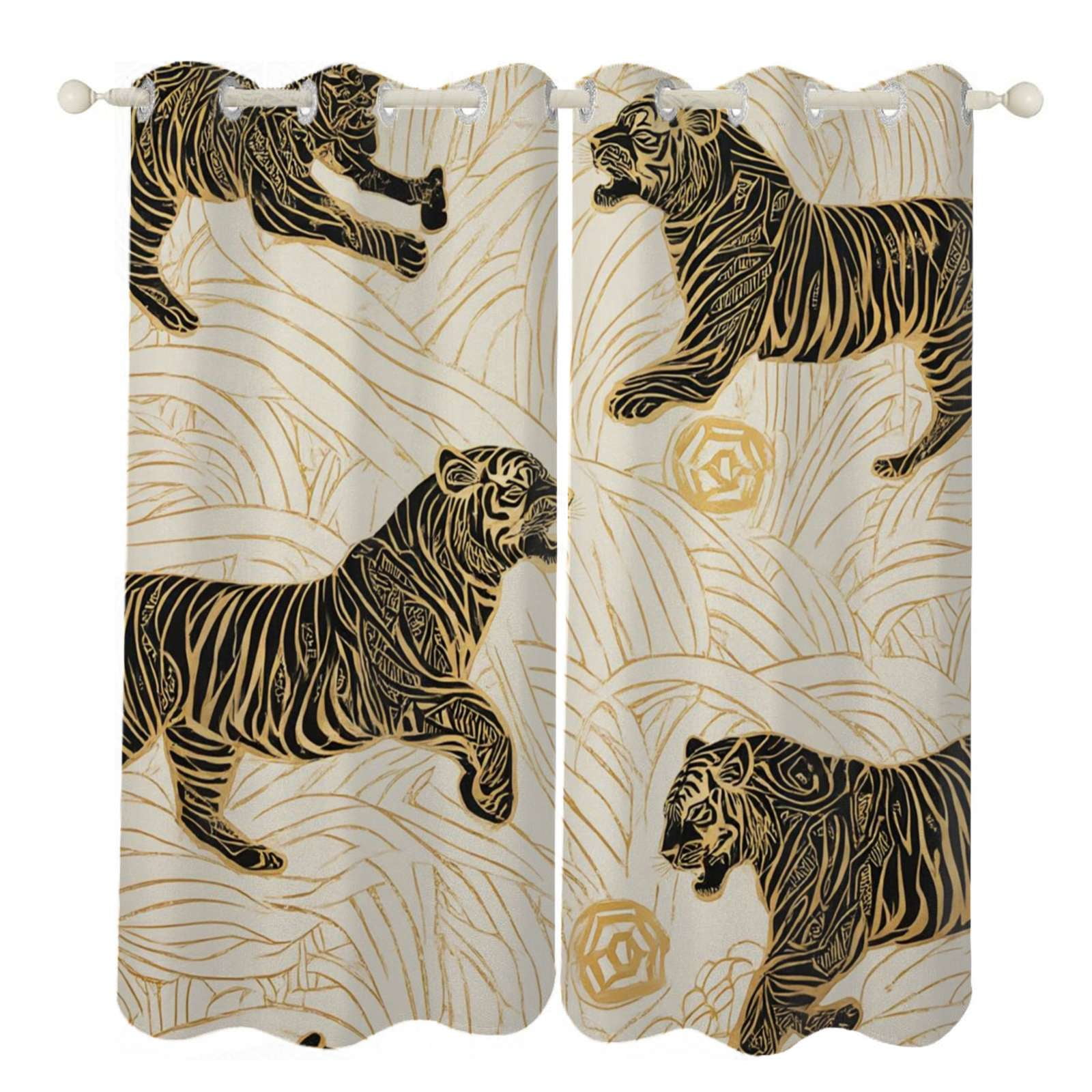Elegant gold tigers jungle print Sunshade Curtains Home Bedroom Living