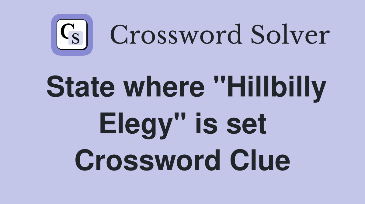 State where quot Hillbilly Elegy quot is set Crossword Clue Answers