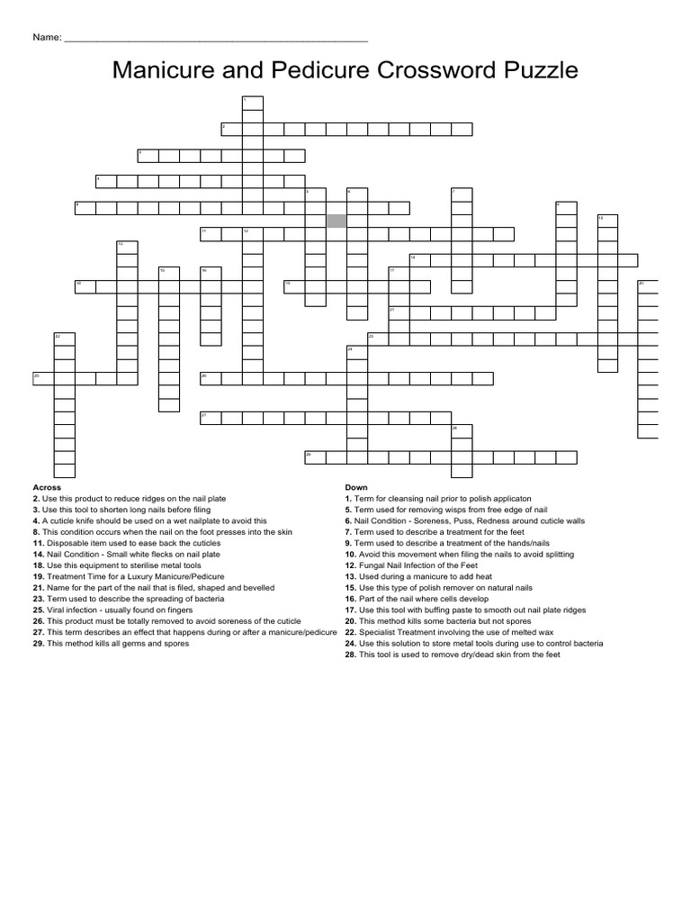 Manicure and Pedicure Crossword Puzzle PDF Nail (Anatomy) Foot