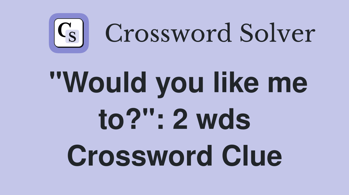 quot Would you like me to? quot : 2 wds Crossword Clue Answers Crossword Solver