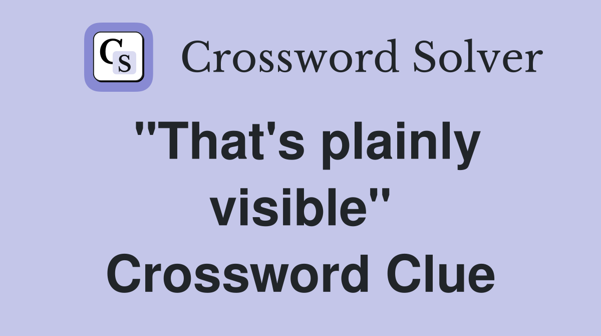 quot That #39 s plainly visible quot Crossword Clue Answers Crossword Solver