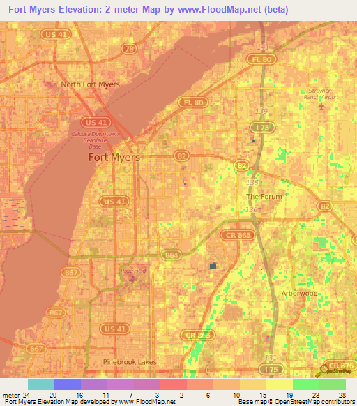 Elevation of Fort Myers US Elevation Map Topography Contour