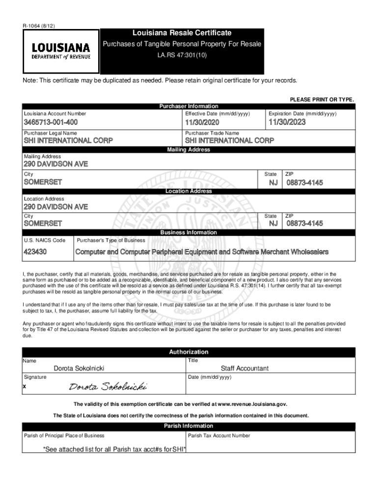 Fillable Online 11/30/2023 Louisiana Resale Certificate Fax Email Print