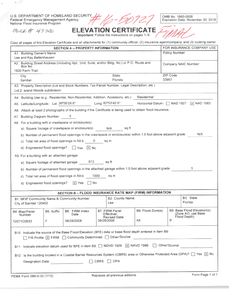 ELEVATION CERTIFICATE FOR 500 IBIS WAY NAPLES FL 34110 08 20 20 1