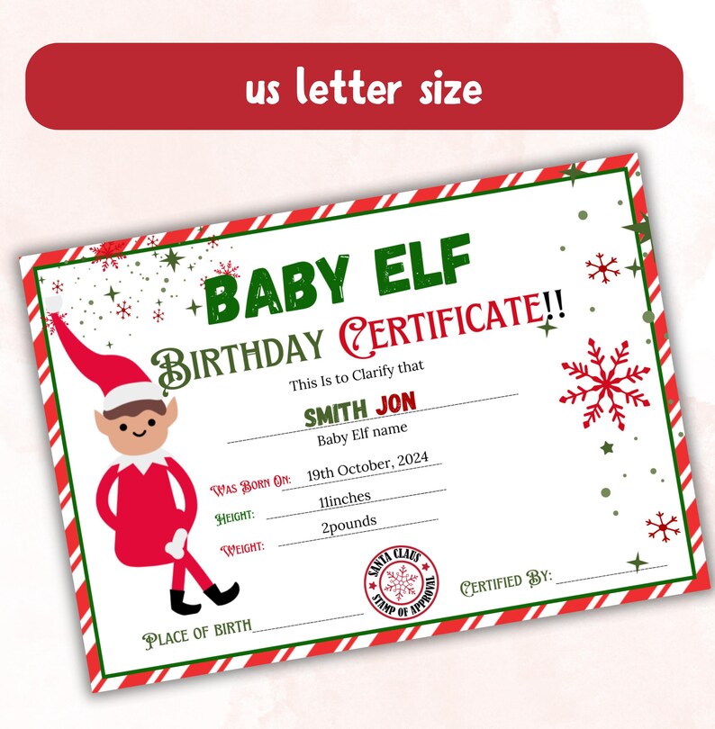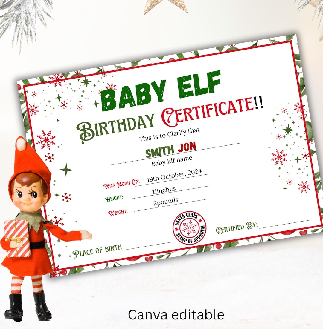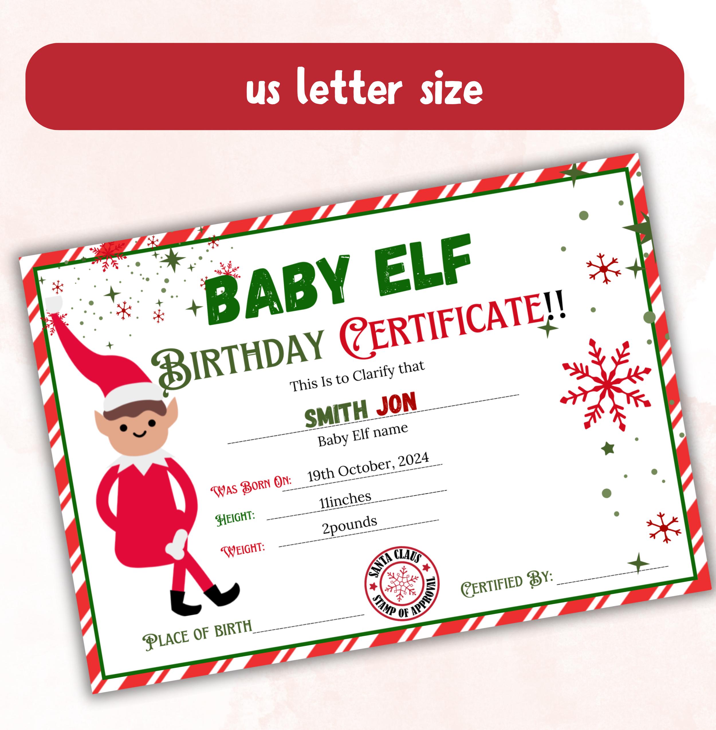 Editable Christmas Baby Elf Birth Certificate Printable Editable