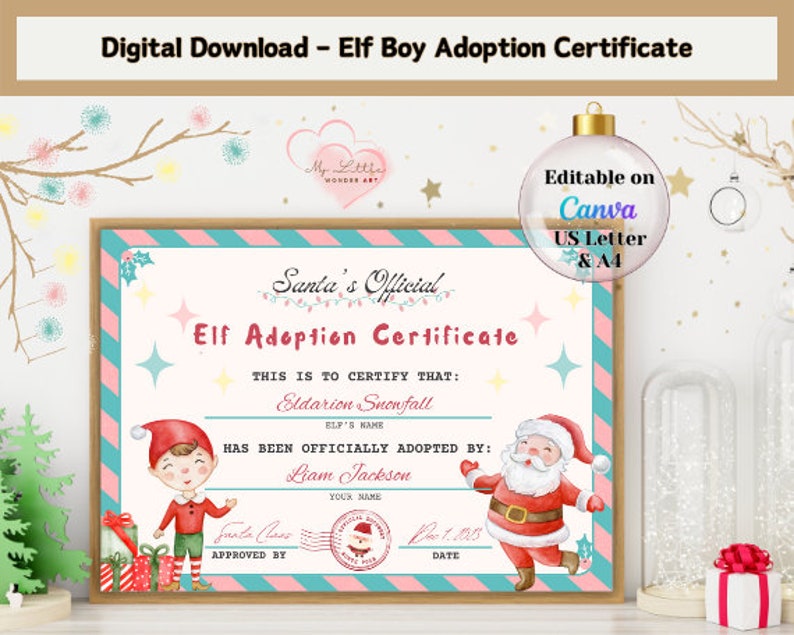 ELF on the Shelf Adoption Certificate Digital Download Christmas Elf