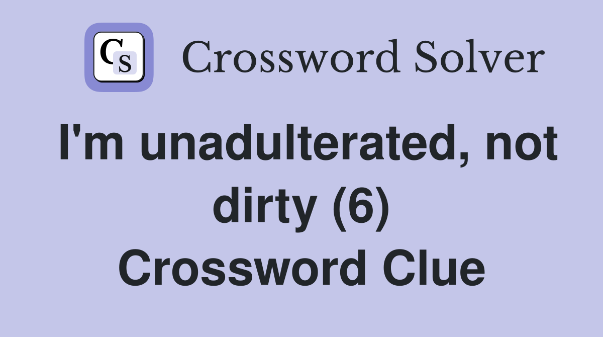 I #39 m unadulterated not dirty (6) Crossword Clue Answers Crossword