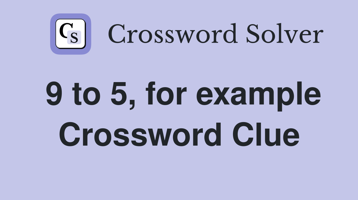 9 to 5 for example Crossword Clue Answers Crossword Solver
