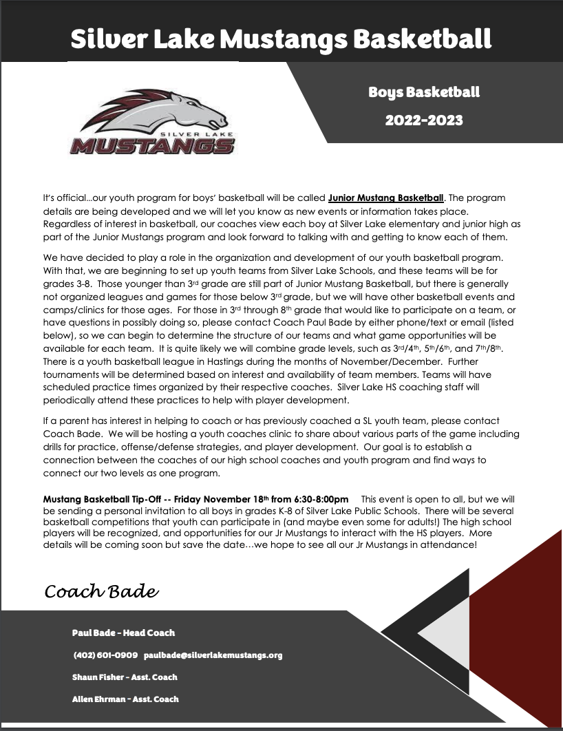 Junior Mustang Basketball Silver Lake Public Schools