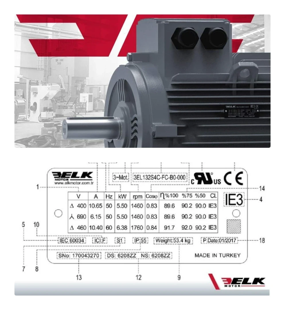 Plaka / Etiket Örnek Gösterimi Elk Motor