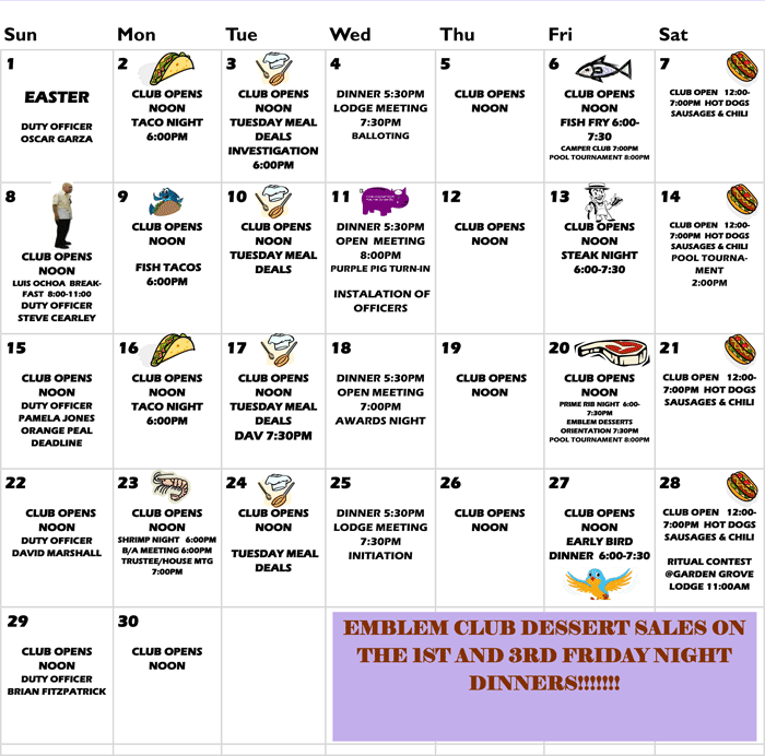 Here are some of the images for Elks Lodge Calendar that we found in our website database.