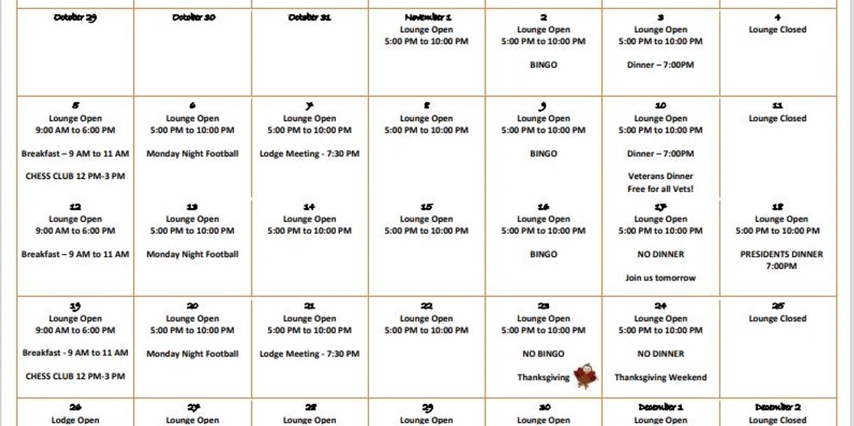 Elks Lodge Springfield Nov 2022 Calendar academic calendar 2022