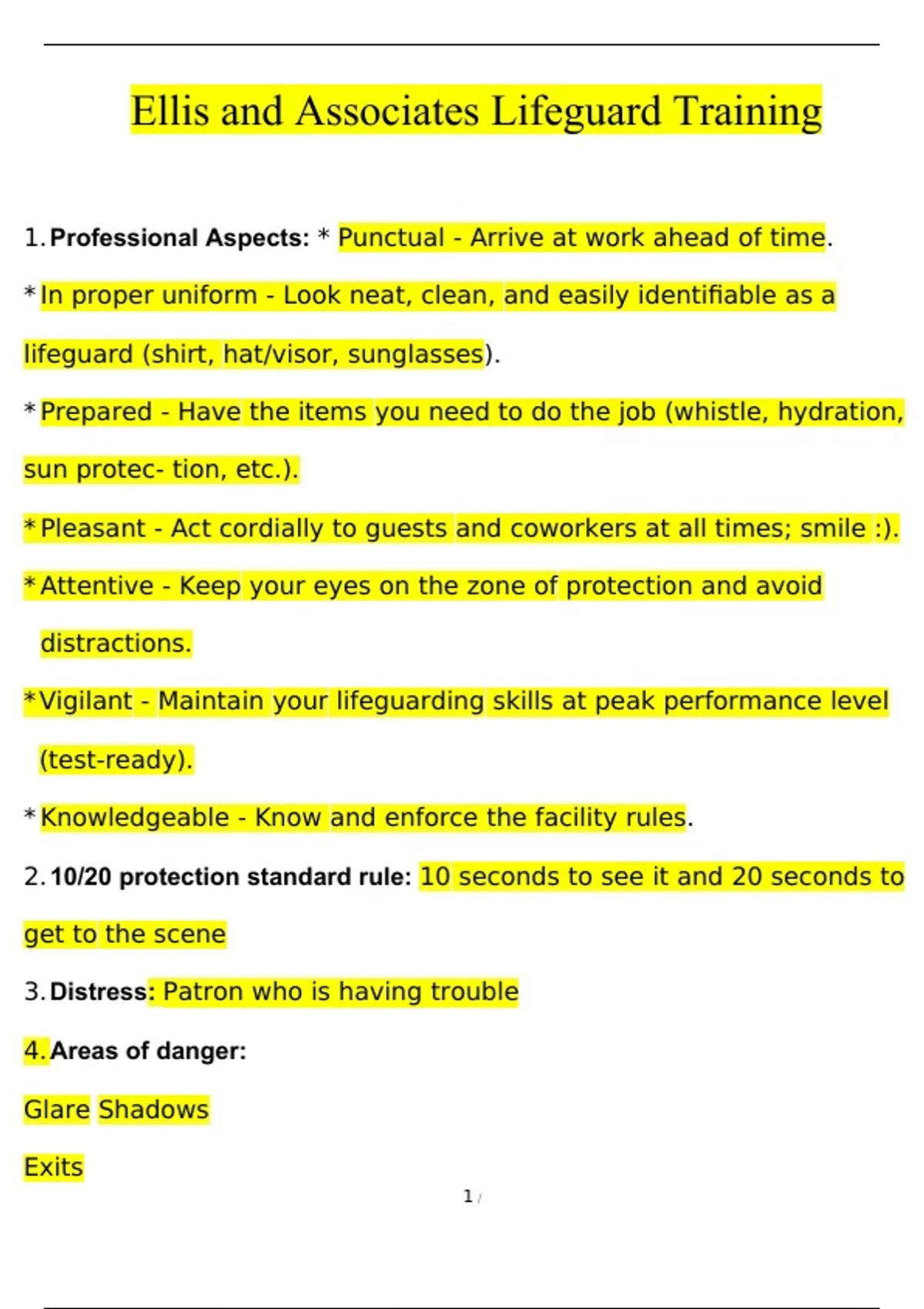 SOLUTION: Ellis lifeguard practice test Studypool