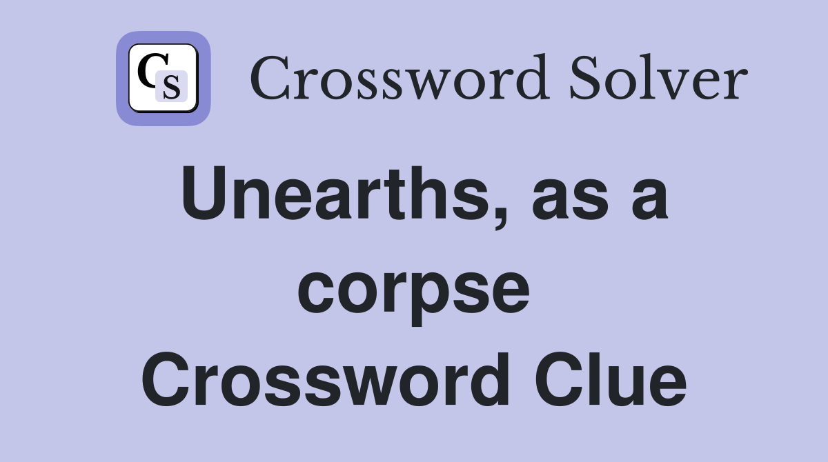 Unearths as a corpse Crossword Clue Answers Crossword Solver
