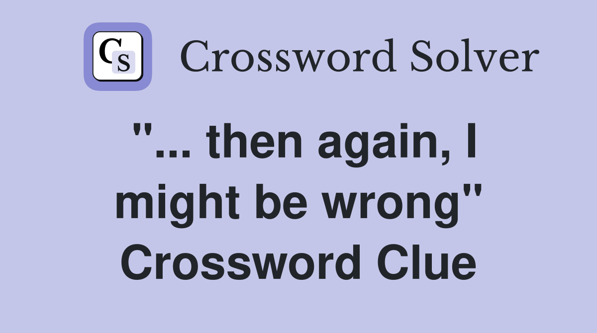 then again I might be wrong quot Crossword Clue Answers Crossword Solver