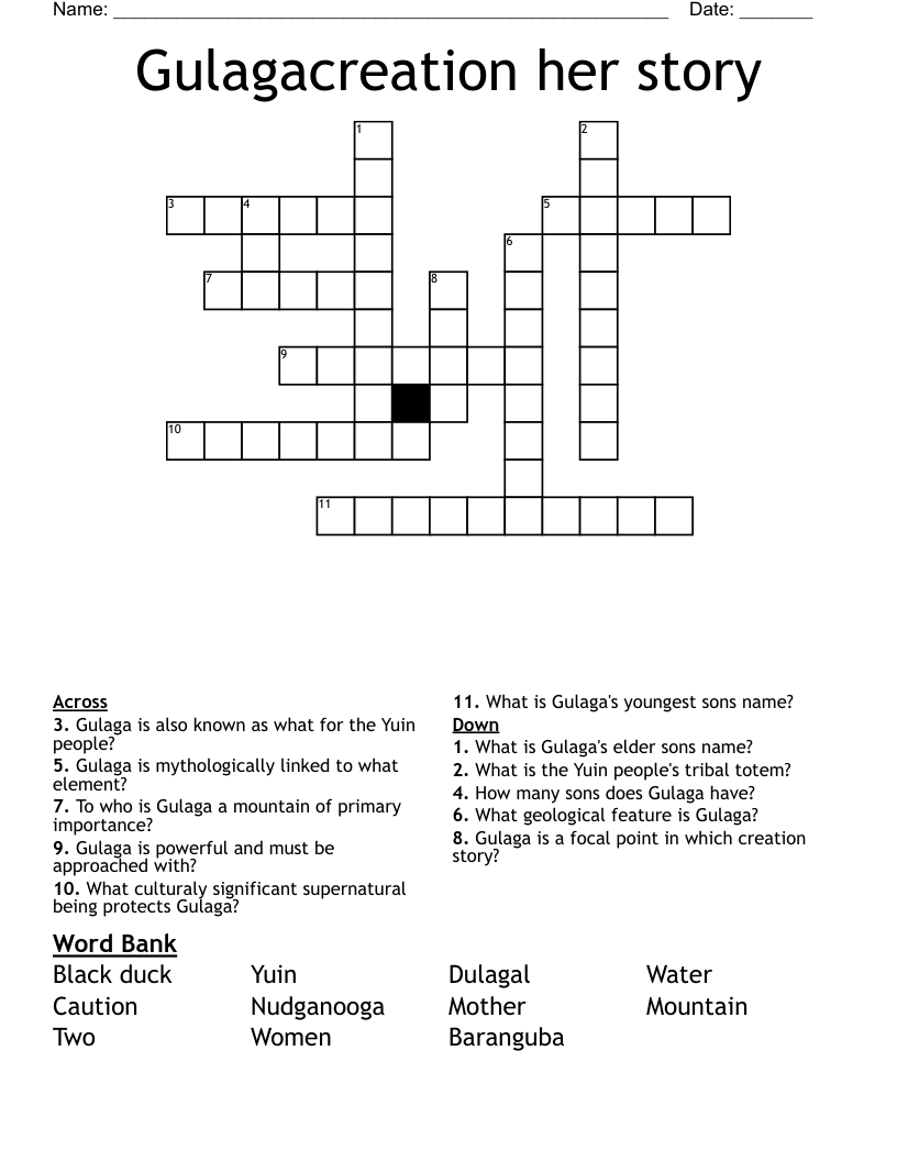 Simple Crossword Activity Sheets About The Creation Story Printable