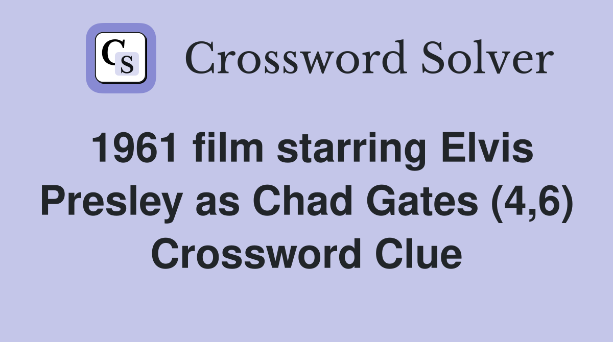 1961 film starring Elvis Presley as Chad Gates (4 6) Crossword Clue