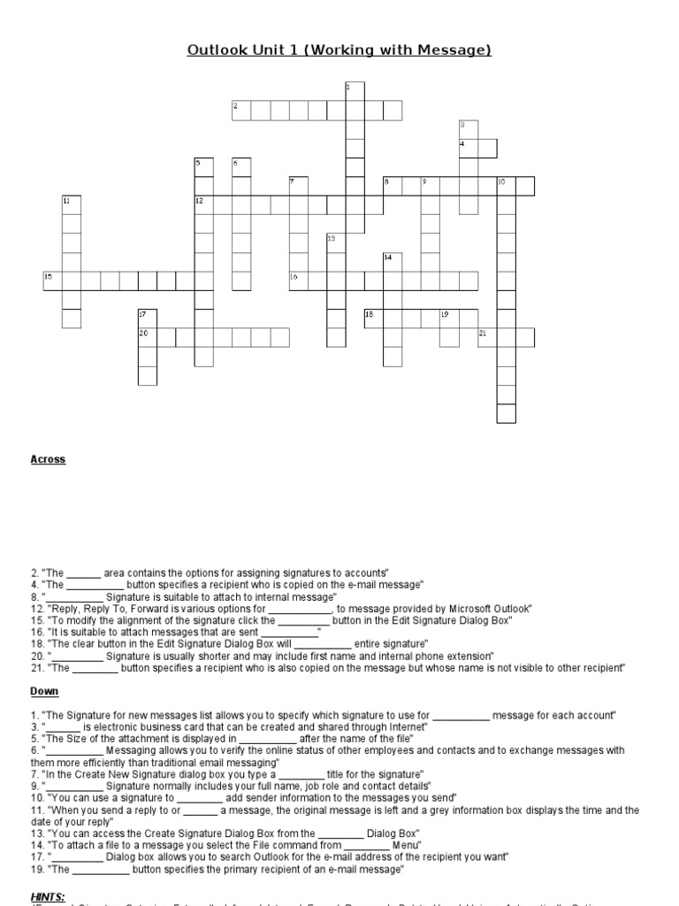 Outlook Unit 1 Crossword PDF Microsoft Outlook Online Services