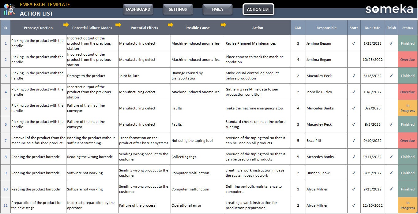 FMEA Excel Template Risk Analysis Tool Failure Mode and Effect
