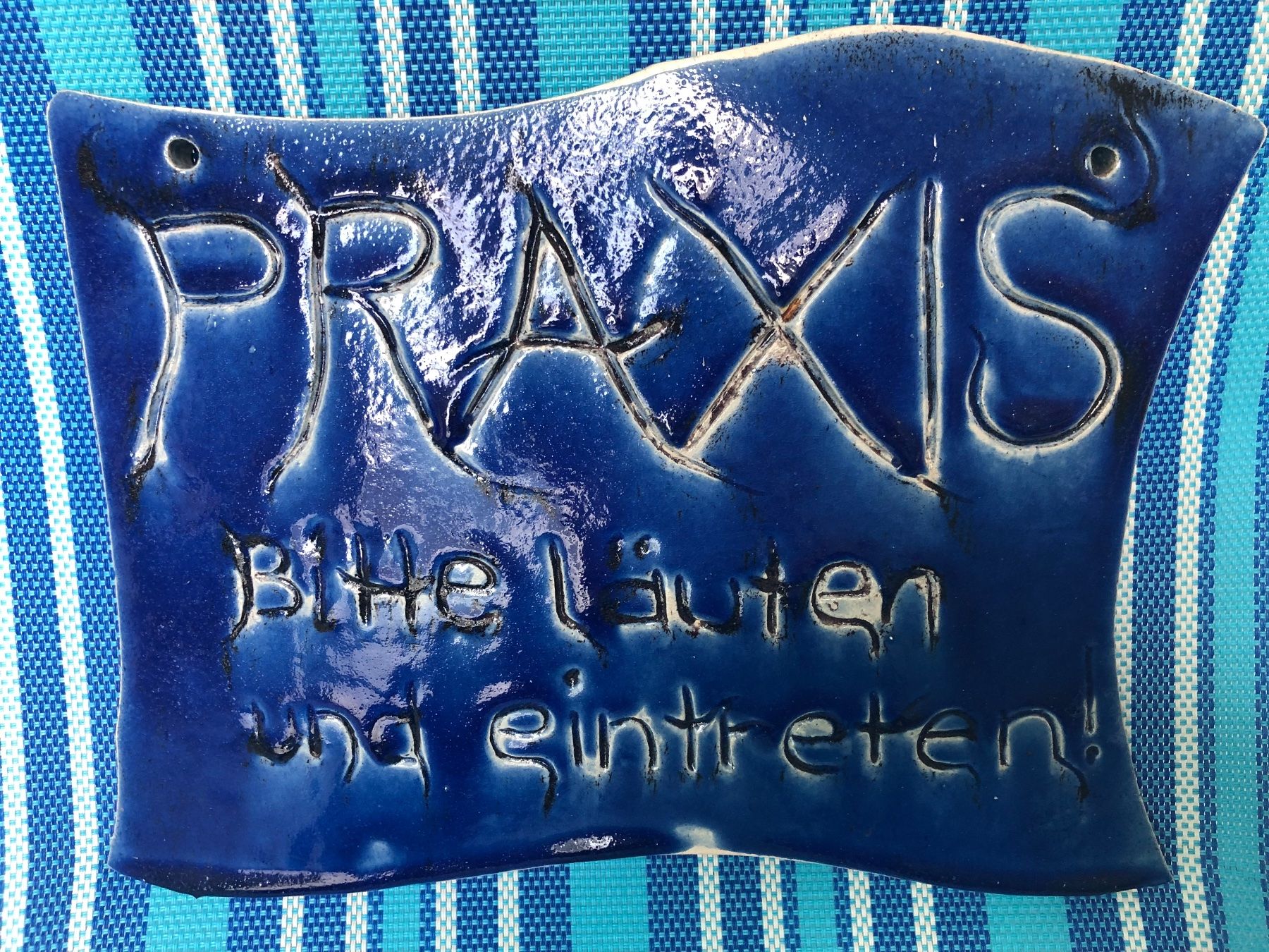 Unikat: Blaues Email Schild quot Praxis quot zu verkaufen (Gebraucht) in