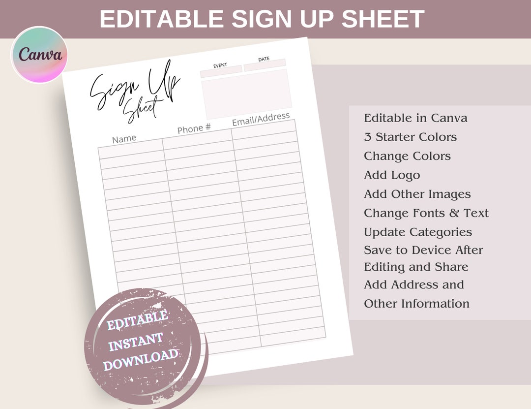 Editable Sign up Sheet Email Sign up Template Business Sign up Etsy